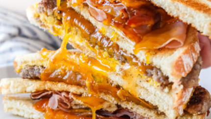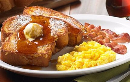 Choice of Meat – Pork, beef, turkey bacon, patty sausage, or link sausage. 2 eggs your way on white toast – option to add cheese – option to add extra meat.